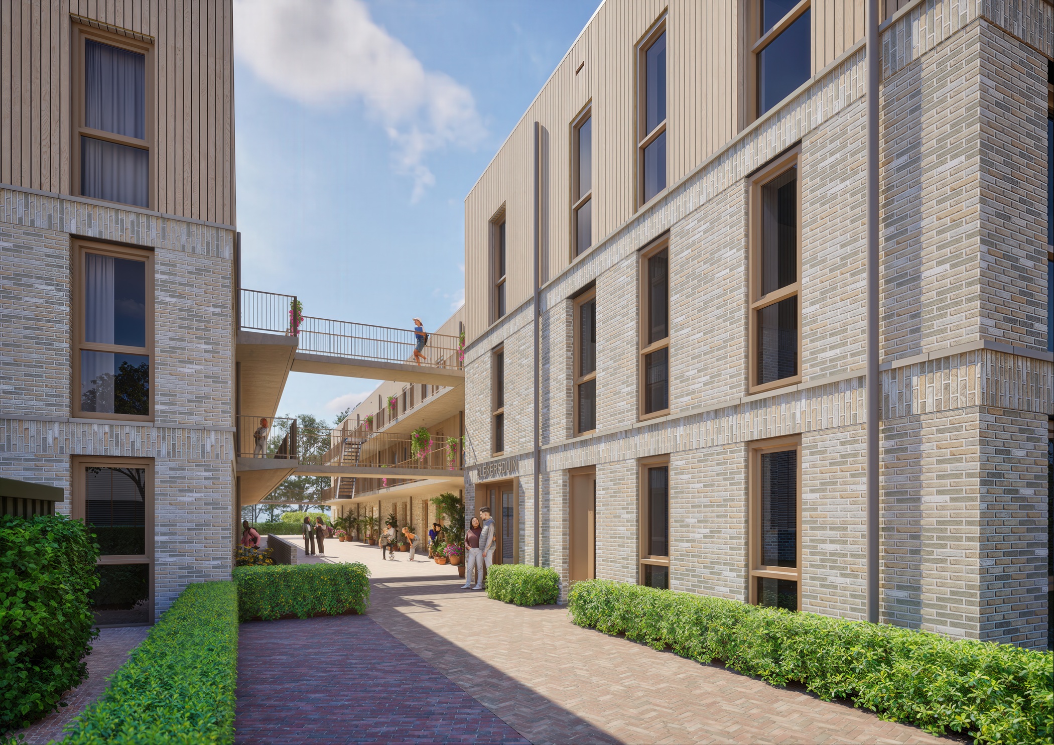 Voor de gevels worden duurzame materialen toegepast, waaronder lichte baksteen en hout in zandtinten, in lijn met de omliggende bebouwing.